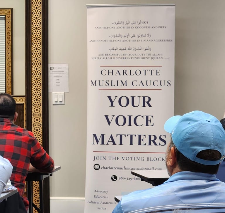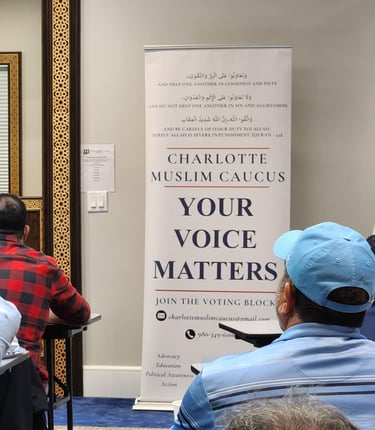The Charlotte Muslim Caucus (CMC) is dedicated to coordinating all non-partisan political advocacy and lobbying efforts of Charlotte Muslims. Through fostering one unified voice, we work towards a future where our concerns are not only acknowledged but also actively addressed, leading our Muslim community to become influential agents in shaping both Charlotte and a global society that cherishes and upholds the standard of morality.